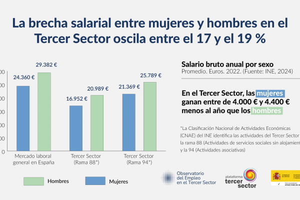 La brecha salarial entre mujeres y hombres en el Tercer Sector en España oscila entre el 17 y el 19 %